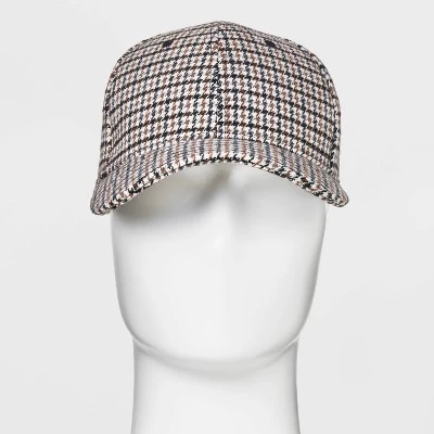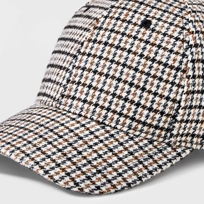 Refresh your fall cap collection with this Houndstooth Baseball Hat from Goodfellow & Co™. The baseball cap is made of a midweight fabric blend with a brown, black, and white houndstooth design for timeless style and comforting warmth. It features a curved brim to keep the sun out of your eyes and face along with embroidered holes on the head for better ventilation. Plus, the adjustable back tuck-and-slide closure helps you find the best fit.