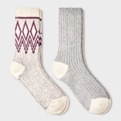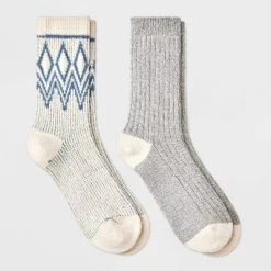 Two-pair pack of crew socks made from a moisture-wicking, lightweight, super-soft fabric with spandex to help keep your feet comfy while you’re engaged in outdoor activities. Smooth toe seams provide an all-around comfortable fit. One neutral-colored Fair Isle print pair and one solid pair gives you two cozy and stylish options for wearing with any of your favorite shoes.
