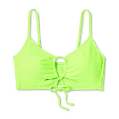 Longline bralette bikini top from Wild Fable™ in neon green. Features keyhole detailing with lace-up style at front. Made with soft and stretchy fabric for comfort. Comes with adjustable straps and removable cups for customizable coverage.