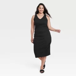 Amp up your casualwear with this Sleeveless Ribbed Side-Ruched Dress from A New Day™. This ribbed pullover dress with a sleeveless design and V-neckline is a must-have in your warm-weather wardrobe, and its simple midi-length silhouette is delightfully accented with ruched sides and a side slit for an extra-stylish touch. It’s made from a soft cotton blend to let you breeze effortlessly through the day, while added spandex provides a stretchy fit that moves with you.