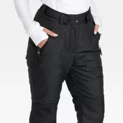 Solid-color snow pants with water- and wind-resistant construction keeps you warm and cozy during wintertime activities. Made from 100% recycled polyester fabric and features elastic cuffs, reinforced knees and extendable legs. Elastic waistband with fly button and zipper closure and zippered pockets add functional detail.